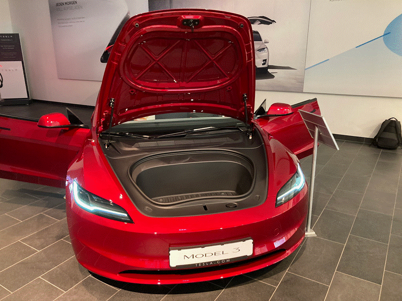 The Model 3 offers impressive storage capacity thanks to its dual-trunk design: