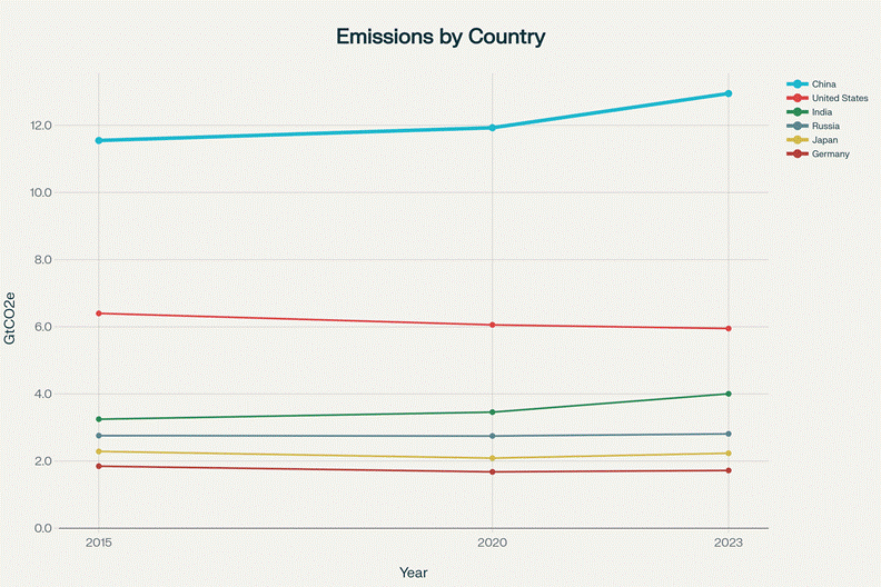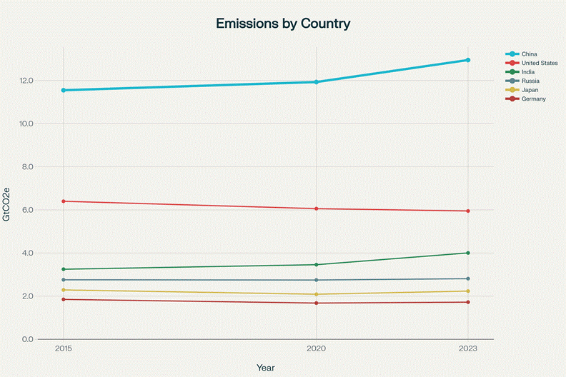 Historical Emissions Trends: Top 6 Emitting Countries (2015-2023)