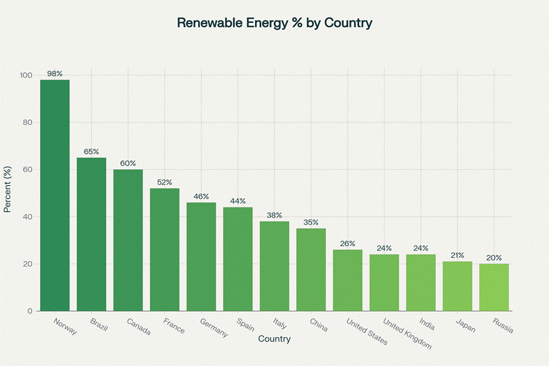 Renewable Energy Share of Electricity Generation by Country (%) – 2024